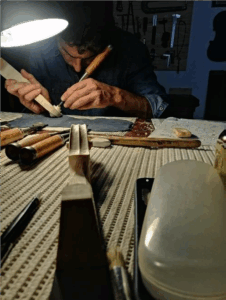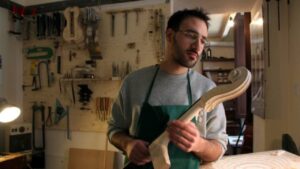 Miguel ha podido observar y aprender técnicas y habilidades del oficio de luthier junto al profesional Gino