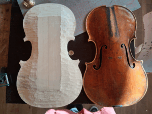 Jose Luis ha podido observar el método de construcción cremonés junto a Jung, y practicar bajo su dirección con la construcción de varios instrumentos de arco.